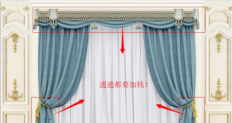 窗帘价格都是分开计算的,布料、附件、帘头样式等等,问商家凭啥收这么多钱,滑轨、扎带、帘头、吊穗都要钱。
